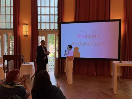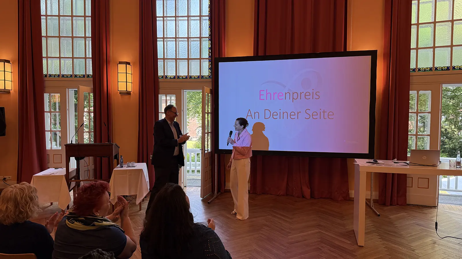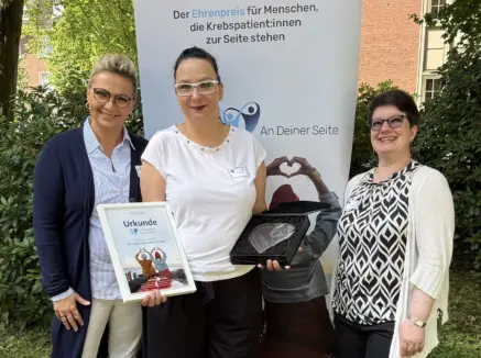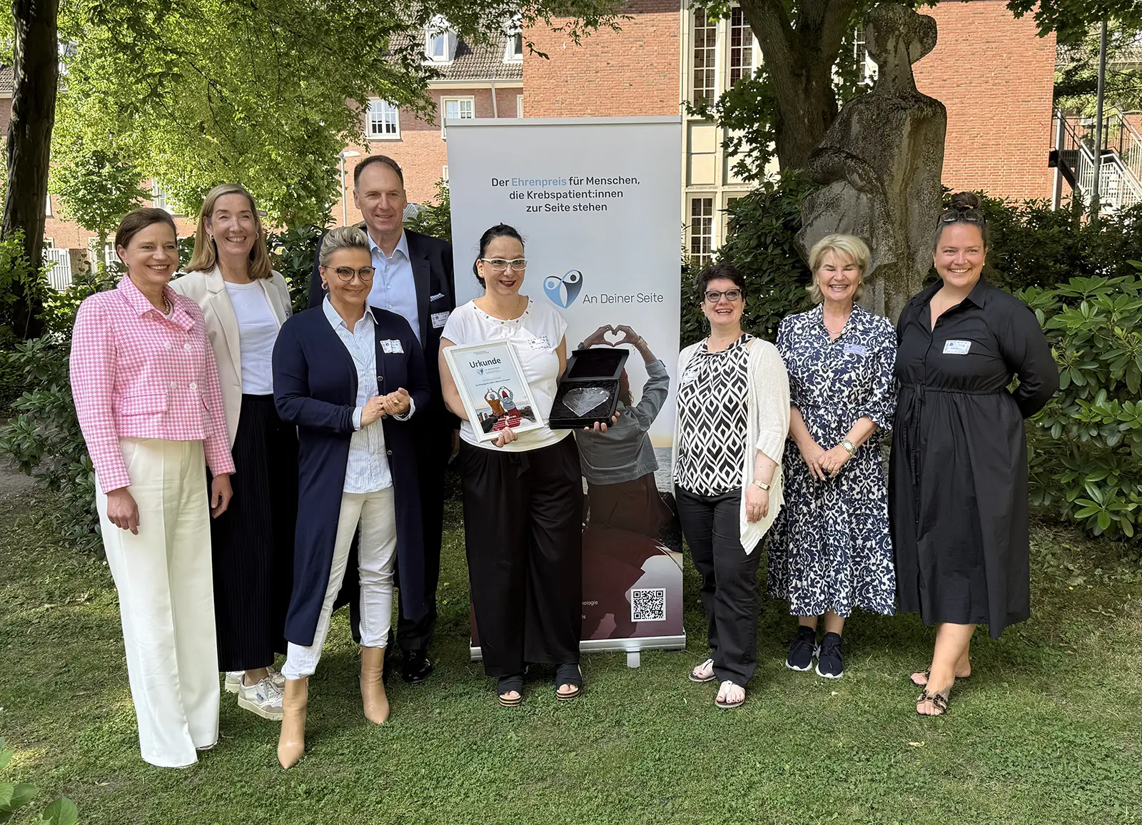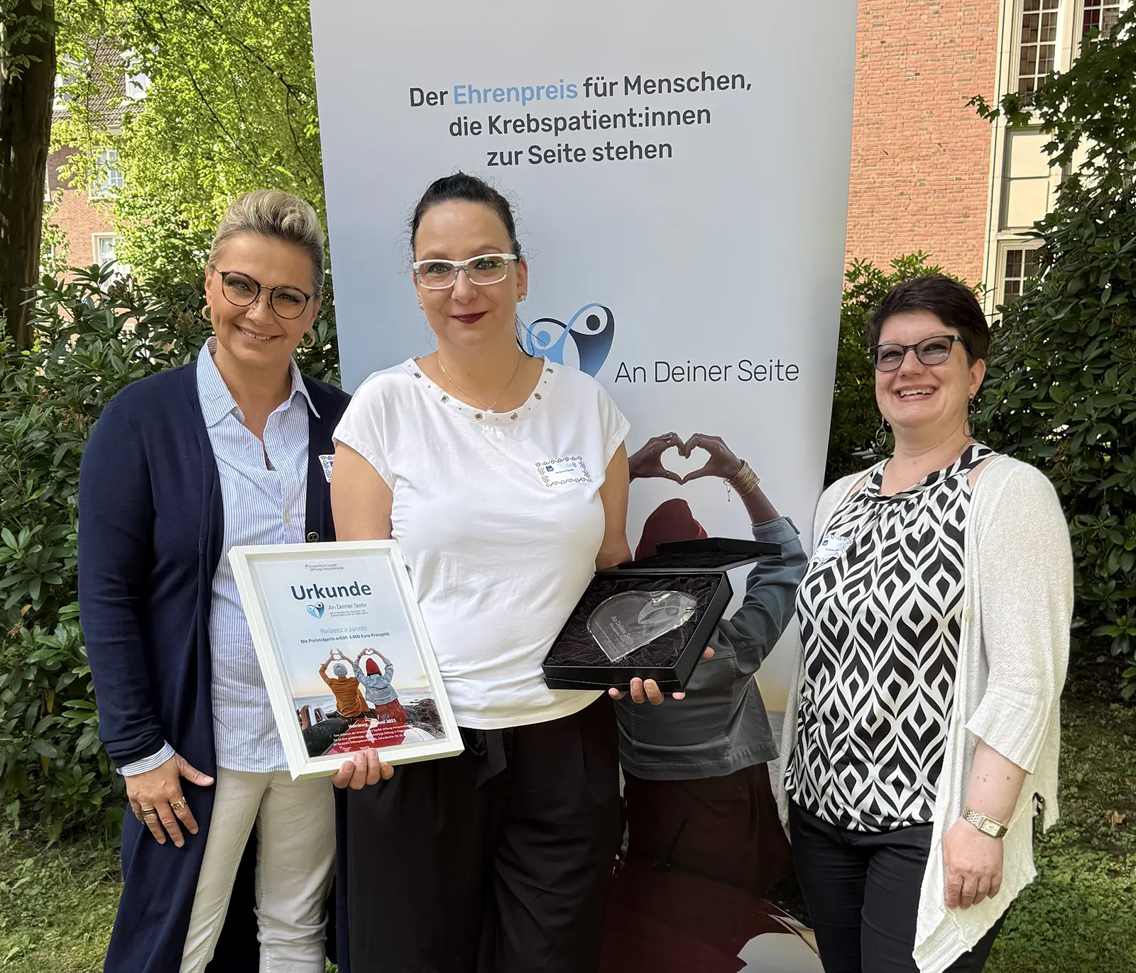 Mit unserem Ehrenpreis „An Deiner Seite“ möchten wir Menschen auszeichnen, die Krebspatient:innen zur Seite stehen. Für uns sind sie „stille Helden“: Mutmacher:innen, Kraftspender:innen, Alltagshelfer:innen und mehr.